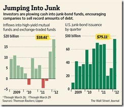 …while junk bonds have been thrashing investment grade bonds as US companies with junk ratings pile into the bond markets at record pace to take advantage of ultra low interest rates (Wall Street Journal)